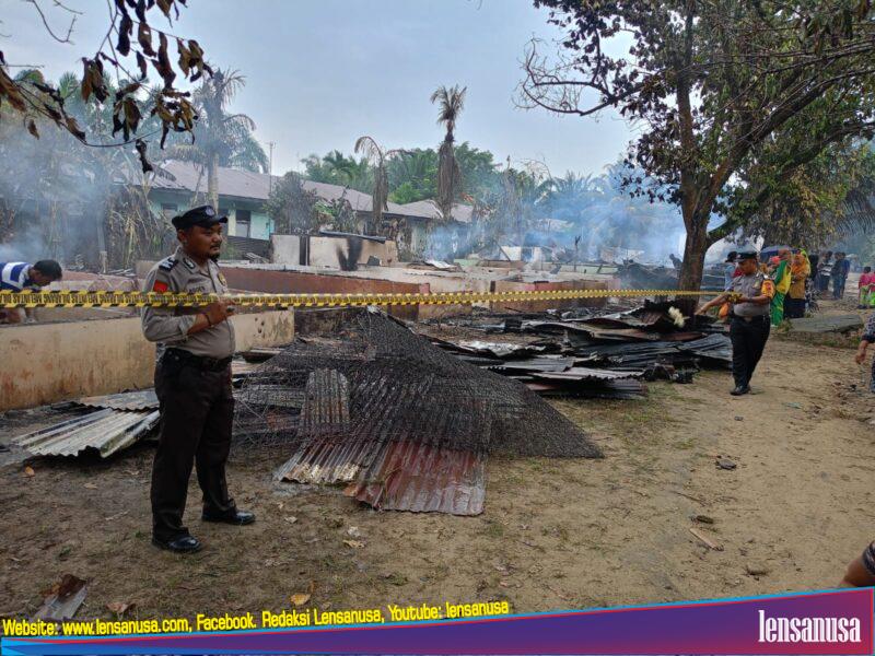 LANGKAT | LENSANUSA.COM – Rumah Dinas Milik PT RGM (Raja Garuda Mas) yang difungsikan untuk Sekolah TK, SD dan SMP Swasta, hangus terbakar berlokasi di Lingkungan VI Sei Pucuk Kecamatan Besitang Kabupaten Langkat, Sabtu (28/10/2023) sekitar pukul 07.30 WIB.