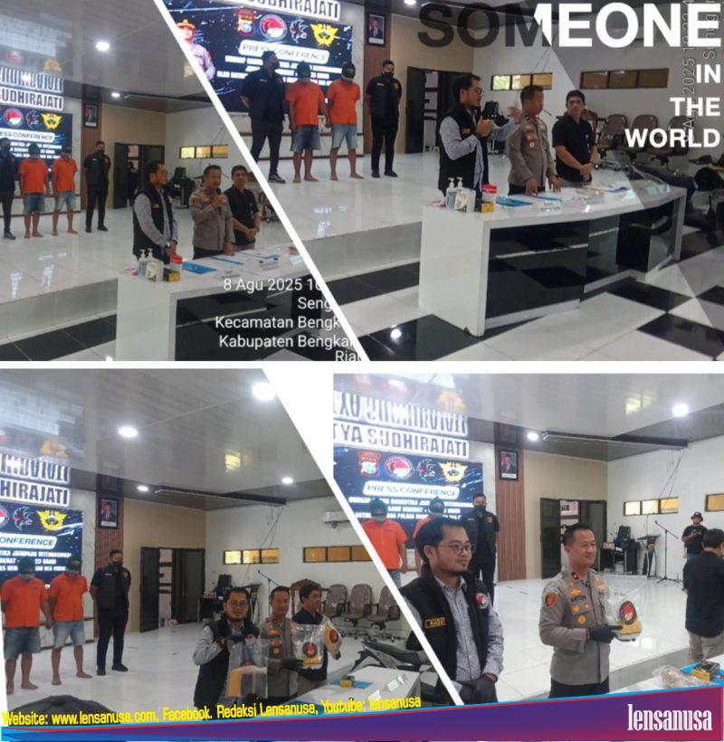BENGKALIS | LENSANUSA.COM – Kepolisian Resort (Polres) Bengkalis menggelar conference pers pengungkapan narkotika jenis sabu-sabu jaringan internasional seberat 956.23 gram di Kecamatan Mandau, Kabupaten Bengkalis, Jum’at (8/8/2025) di aula Mapolres Bengkalis.