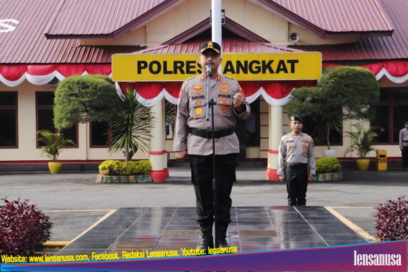 Bertindak sebagai Inspektur Upacara, Kapolres Langkat AKBP David Triyo Prasojo, S.H., S.I.K., M.Si., didampingi Waka Polres Langkat KOMPOL Husnil Mubarak Daulay, S.H., S.I.K., M.I.K., bersama Pejabat Utama, para Kapolsek sejajaran, anggota Polres Langkat, ASN, dan Bhayangkari.