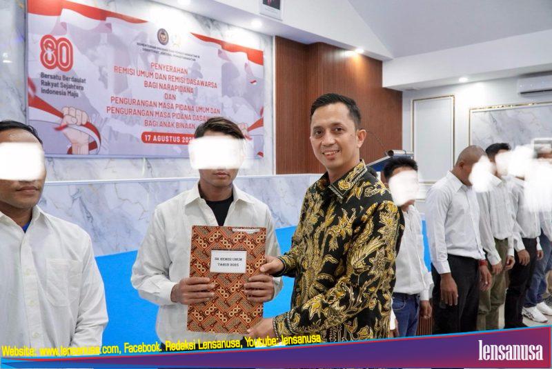 MEDAN | LENSANUSA.COM – usai melaksanakan Upacara HUT RI Ke-80 Kemerdekaan Republik Indonesia, Rutan Kelas I Medan melaksanakan penyerahan Remisi Umum dan Remisi Dasawarsa Tahun 2025 kepada Warga Binaan. Acara penyerahan dipimpin langsung oleh Kepala Rutan Kelas I Medan, Andi Surya didampingi Kepala Seksi Pelayanan Tahanan, Ronny Steven, Kasubsi Administrasi & Perawatan, Wisnu Jatmiko, beserta Staff.