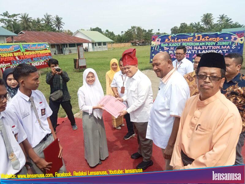 LANGKAT | LENSANUSA.COM – Peletakan batu pertama oleh Plt. Bupati Langkat H. Syah Afandin SH pembangunan lapangan Futsal pemberian Beasiswa bagi siswa kurang mampu dan penandatangan Deklarasi dan Komitmen Bersama Bebas Perudungan / Bulli dan Narkoba di sekolah SMA Negeri I Kecamatan Hinai Kabupaten Langkat pada hari Rabu (06/12/2023).