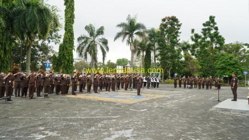 PEKANBARU | LENSANUSA.COM – Koordinator bidang Tindak Pidana Umum Kejaksaan Tinggi Riau Sunandar Pramono, S.H., M.H., selaku Penerima Apel Kerja Pagi yang diikuti oleh Para Asisten dan Koordinator beserta seluruh pegawai Kejaksaan Tinggi Riau di Halaman Kantor Kejaksaan Tinggi Riau, Senin (13/03/2023) sekira pukul 07.30 WIB.