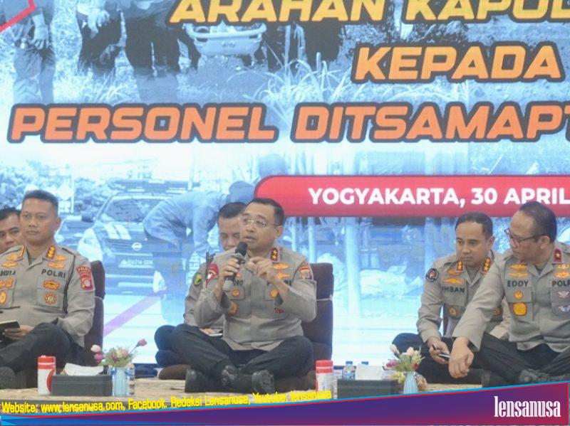 YOGYAKARTA | LENSANUSA.COM. – Kapolda DIY Irjen Pol Anggoro Sukartono, S.I.K. memberikan arahan kepada personel Dit Samapta Polda DIY pada Rabu,(30/4/2025). Kegiatan ini berlangsung di Gedung Anton Soedjarwo, Mapolda DIY.