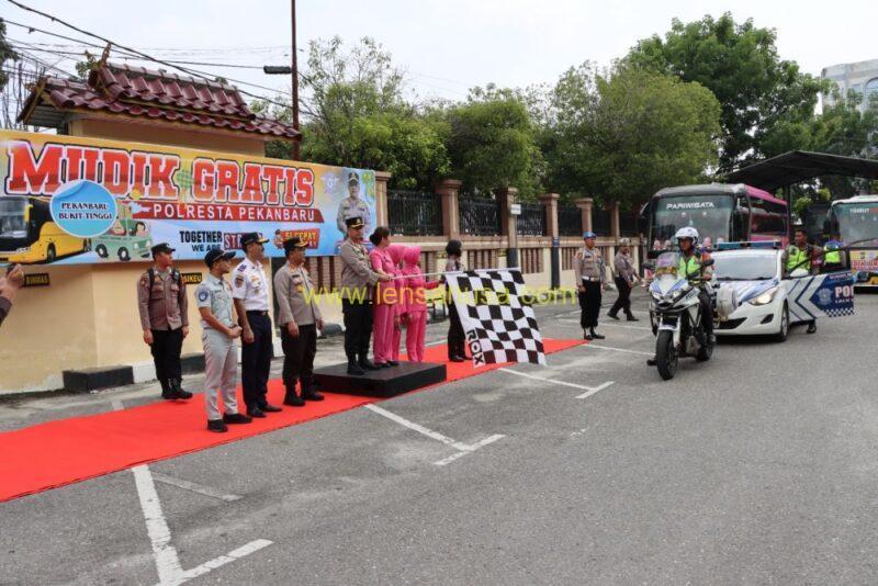 PEKANBARU | LENSANUSA.COM – Dua bus rombongan mudik gratis dari Kota Pekanbaru menuju Sumatera Barat (Sumbar) dilepas dalam program Mudik Gratis Polresta Pekanbaru.