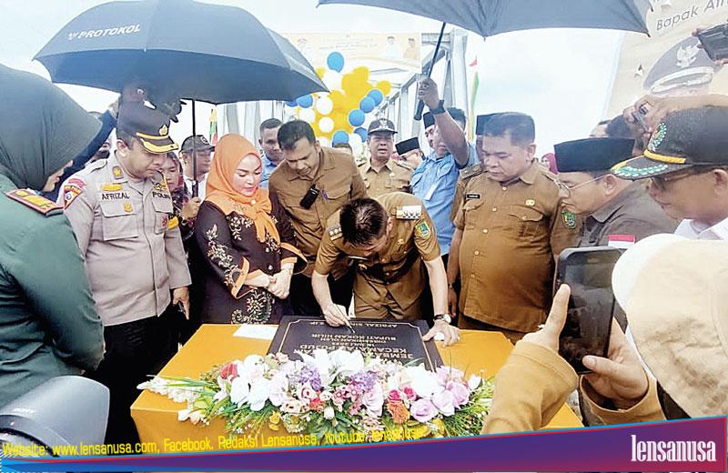 ROKAN HILIR | LENSANUSA.COM – Bupati Rokan Hilir ( Rohil ), Afrizal Sintong SIP meresmikan pembangunan jembatan penyebarangan ke Kepenghuluan Air Hitam, Kecamatan Pujud, Selasa (18/7/2023) sore.