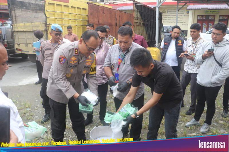 LANGKAT | LENSANUSA.COM – Pemusnahan barang bukti tindak pidana Narkotika jenis sabu seberat 21.426,58 gram di wilayah Kabupaten Langkat, Sumatera Utara Bertempat diMako Mapolres langkat, Jum’at (11/10/ 2024).