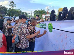 Aksi ini pun berlangsung sampai pukul 17:00 Wib, setelah menandatangani spanduk sebagai dukungan,masa aksi membagikan Takjil berbuka puasa dan masa aksi bubar dengan tertip.