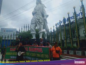 BANTUL | LENSANUSA.COM. – Puluhan orang terdiri dari beberapa perwakilan organisasi kemasyarakatan (Ormas) yang menamakan diri Aliansi Masyarakat Bantul menggelar aksi simpatik dalam mendukung revisi Undang-Undang Tentara Nasional Indonesia (UU TNI) yang telah disahkan oleh DPR RI di bawah patung Pangeran Diponegoro simpang empat Klodran Bantul, Daerah Istimewa Yogyakarta (DIY), Jumat siang (28/3/2025).