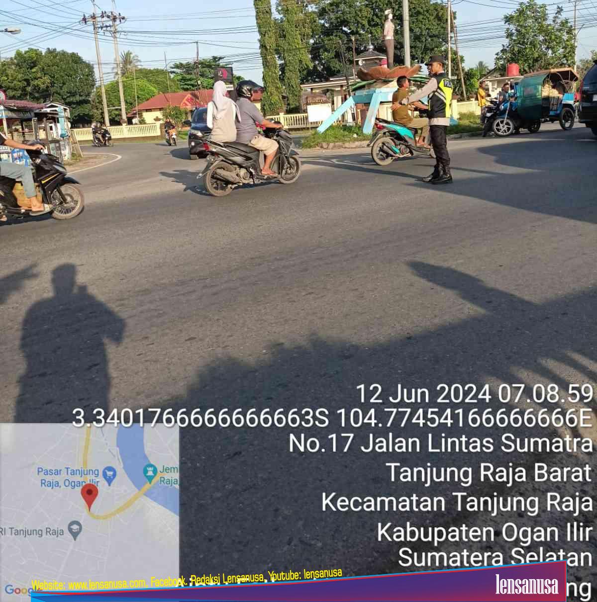 OGAN ILIR | Lensanusa.com – Personel Polsek Tanjung Raja melaksanakan kegiatan rutin Strong Point Pagi yang bertempat di Tugu Polwan dan di depan SMA Negeri 1 Tanjung Raja serta di Jalintim Tanjung Raja Kecamatan Tanjung Raja Kabupaten Ogan Ilir. Rabu (12/06/2024) sekira pukul 06.00 Wib s/d pukul 07.00 Wib.