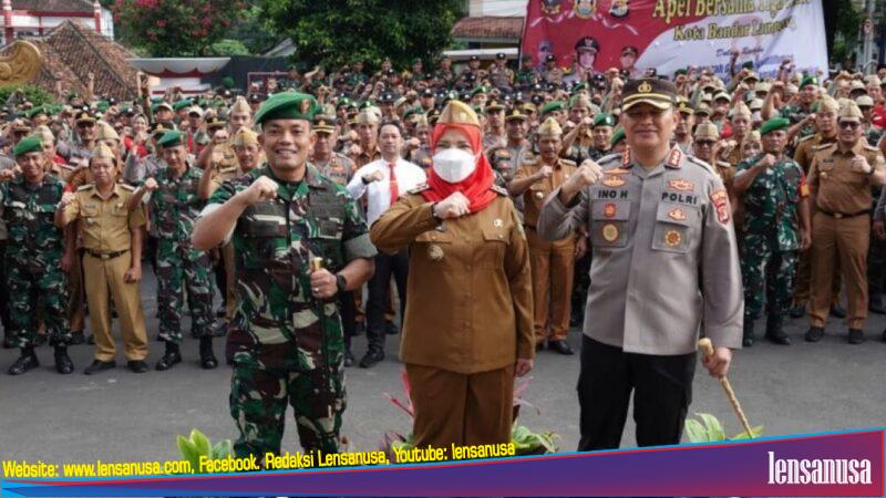 Para peserta apel yang terdiri dari Babinsa Jajaran Kodim 0410/KBL, Bhabinkamtibmas, Polresta Bandar Lampung, camat, lurah dan linmas se-Kota Bandar Lampung.