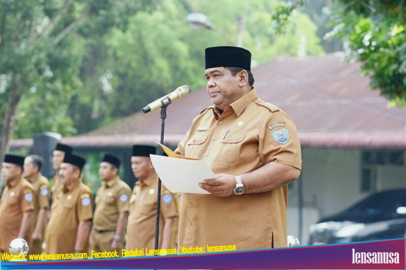 LABUHANBATU | LENSANUSA.COM-Asisten III Administrasi Umum Pemerintah Kabupaten Labuhanbatu Zaid Harahap, S.Sos., MM., memimpin Apel Gabungan Kelompok I Pegawai di Lingkungan Pemerintah Kabupaten Labuhanbatu di lapangan kantor Badan Kepegawaian Pendidikan dan Pelatihan Kabupaten Labuhanbatu, Rantau Selatan, Senin (11/12/2023).