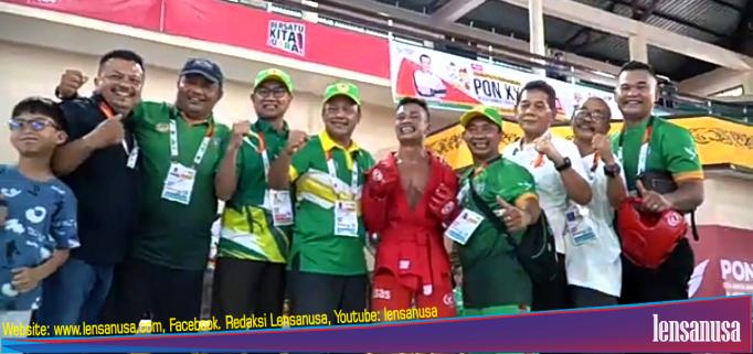 LENSANUSA.COM |LANGKAT,-Atlet sambo kontingen Sumatera Utara kelas Men Combat 65 Kg, Everaim Ginting berhasil meraih medali emas usai mengalahkan lawannya Gugun Gusman dari Jawa Barat dengan TKO.