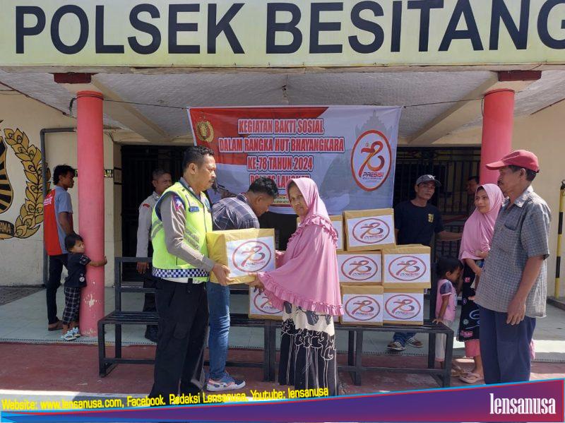 LANGKAT | LENSANUSA.COM|| Dalam rangka menyambut HUT Bhayangkara ke-78, Polres Langkat menggelar kegiatan bakti sosial melalui Polsek Besitang.