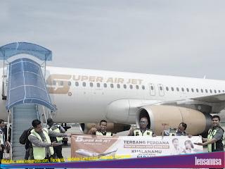Dedi menjelaskan, Penerbangan ini menggunakan maskapai Super Air Jet menggunakan tipe pesawat berjenis A320 berkapasitas 180 penumpang.