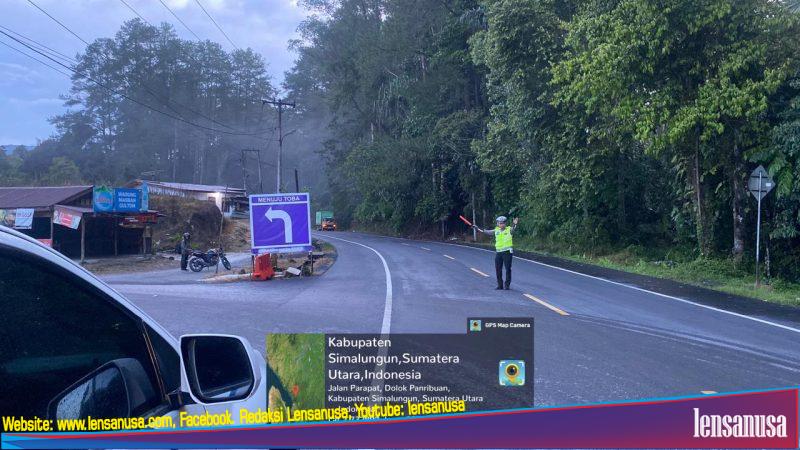Kasat Lantas Polres Simalungun, AKP Jonni FH Sinaga, S.H., memimpin lima personel Satlantas dalam mengarahkan arus lalu lintas dari Pematang Siantar menuju Parapat melalui Simpang Palang ke Simpang Sitahuan, dan sebaliknya dari Parapat ke Pematang Siantar melalui jalur yang sama. Berkat penanganan cepat ini, situasi lalu lintas dilaporkan tetap aman dan lancar meski cuaca di lokasi masih hujan gerimis.