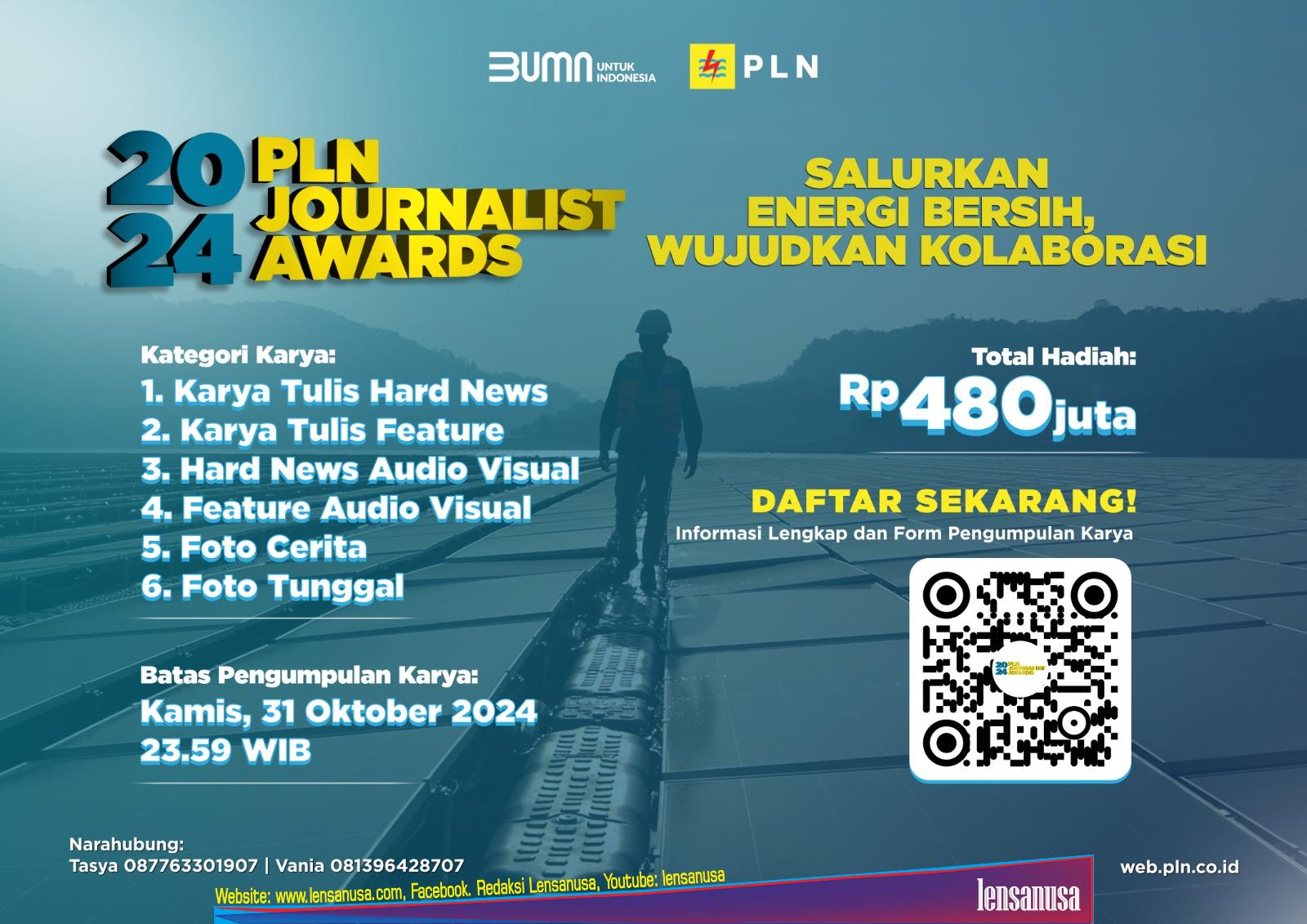 JAKARTA | Lensanusa.com – PT PLN (Persero) menyiapkan total hadiah sebesar Rp480 juta bagi para pemenang PLN Journalist Award (PJA) 2024. Mengusung tema “Salurkan Energi Bersih, Wujudkan Kolaborasi”, periode pendaftaran PJA 2024 masih dibuka hingga 31 Oktober 2024.