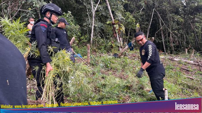 Setibanya di desa pukul 09.00 WIB, tim kembali menggelar apel singkat sebelum menyusuri hutan dan perbukitan yang lebat. Sekitar pukul 13.00 WIB, ladang ganja yang diperkirakan seluas dua hektare berhasil ditemukan tersembunyi di balik vegetasi rimbun.