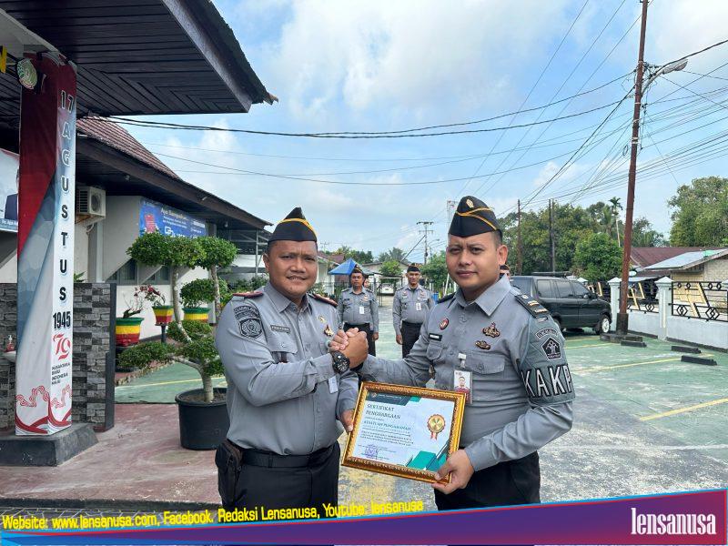 LENSANUSA.COM | PASIR PANGARAYAN – Dalam agenda apel pagi rutin pegawai Lapas Pasir Pangarayan, Kepala Lapas Kelas IIB Pasir Pangarayan, Efendi Parlindungan Purba berikan penghargaan kepada pegawai teladan atau Best Employee dan Ruangan Terbersih untuk periode bulan Februari Tahun 2025 pada Selasa (04/03/2025).