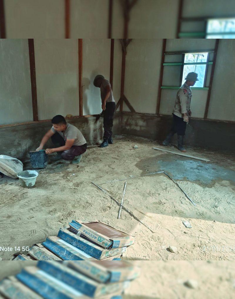 Dalam pelaksanaannya, personel Brimob Batalyon C melakukan pekerjaan plester dinding pada rumah swadaya hunian sementara ke-11 yang dibangun di wilayah tersebut. Proses ini menjadi tahapan penting untuk memastikan rumah yang dibangun lebih layak, aman, dan nyaman bagi penghuninya.
