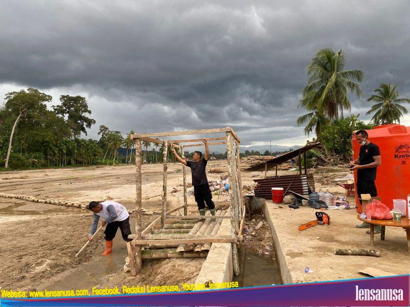 Kegiatan yang dipimpin Danki-2 Batalyon C, IPTU Januar Fazhari, S.H., tersebut menjadi langkah nyata Polri dalam memberikan layanan mendasar kepada masyarakat yang saat ini masih bertahan di posko pengungsian. Proses pembangunan memanfaatkan berbagai peralatan seperti cangkul, senso, palu, dan gergaji untuk mempercepat penyelesaian fasilitas.
