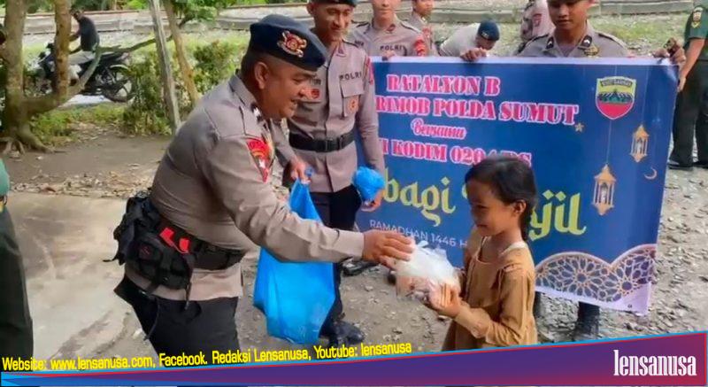TEBING TINGGI | LENSANUSA.COM – Memasuki bulan suci Ramadan, Batalyon B Pelopor Satuan Brimob Polda Sumatera Utara, bersama Kodim 0204/DS melaksanakan kegiatan berbagi takjil kepada masyarakat Kota Tebing Tinggi.