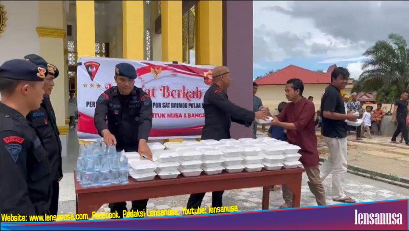 TAPSEL | LENSANUSA.COM – Mengusung semangat berbagi dan peduli terhadap sesama, Personel Batalyon C Pelopor Satuan Brimob Polda Sumatera Utara melaksanakan kegiatan bakti sosial dalam rangka Jumat Berkah dengan membagikan 100 paket makanan gratis kepada para jemaah yang baru selesai menunaikan Salat Jumat di Masjid Hubbul Waton, Sirumbi, Kecamatan Angkola Timur, Kabupaten Tapanuli Selatan.
