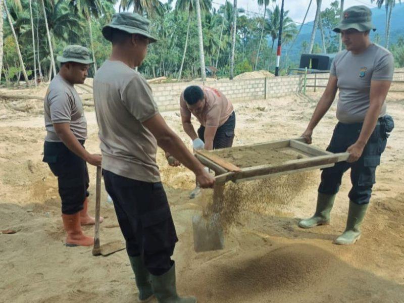 Dipimpin oleh Danton I Kompi 1 Batalyon C, IPTU Roy Sandri Pohan, S.H., personel Brimob melaksanakan finishing plester dinding rumah swadaya ke-11, sekaligus melakukan pembersihan sisa material di sekitar lokasi pembangunan agar lingkungan tetap tertata dan aman.
