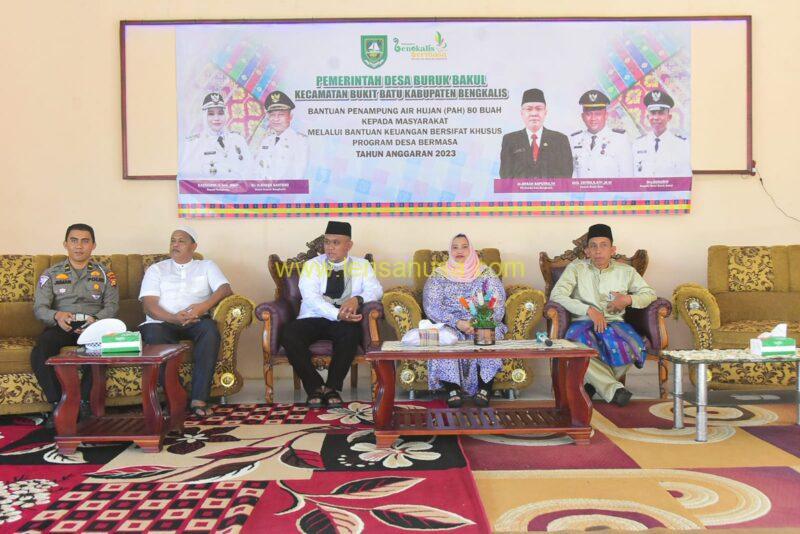 BENGKALIS | LENSANUSA.COM – Bupati Bengkalis Kasmarni menyerahkan bantuan Penampung Air Hujan (PAH) kepada masyarakat Desa Buruk Bakul.