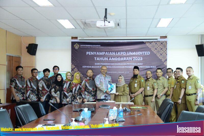 PEKANBARU | LENSANUSA.COM – Bupati Bengkalis Kasmarni menyerahkan Laporan Keuangan Pemerintah Daerah (LKPD) Unaudited (laporan yang belum diaudit) tahun 2023 kepada Badan Pemeriksa Keuangan (BPK) RI Perwakilan Provinsi Riau Selasa, 26 Maret 2024 di Kantor BPK Perwakilan Provinsi Riau, Jalan Sudirman Pekanbaru.