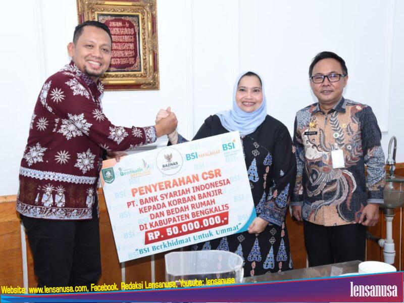 Bantuan diserahkan langsung oleh Area Manager BSI Pekanbaru, Tengku Rizaldi Syahputra bersama Bupati Bengkalis Kasmarni sejumlah Rp50 juta.