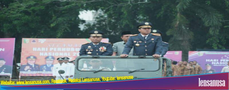 KUANTAN SINGINGI | LENSANUSA.COM – Bupati Kuantan Singingi Drs. H. Suhardiman Amby menjadi Inspektur Upacara Peringatan Hari Perhubungan Nasional (HARHUBNAS) Ke-52, di Lapangan Limuno, Teluk Kuantan , Senin 18/09/2023 pagi