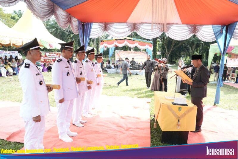 ROKAN HILIR | LENSANUSA.COM – Bupati Rokan Hilir Afrizal Sintong SIp Msi melakukan pengambilan sumpah jabatan dan pelantikan kepada sebanyak lima orang Datuk penghulu di Kecamatan Bangko Pusako, Minggu (3/12/2023) di Lapangan sepak bola KM 18 Balam.