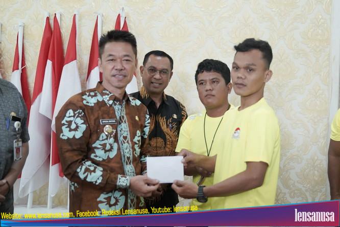 ROKAN HILIR | LENSANUSA.COM – Bupati Rokan Hilir Afrizal Sintong melakukan pelepasan untuk memberangkatkan official dan atlet wushu Rohil yang akan bertanding di Pekanbaru mengikuti seleksi daerah Pekan Olahraga Wilayah (Porwil) Provinsi Riau, Kamis (20/7/2023) di mess Pemda Rohil.