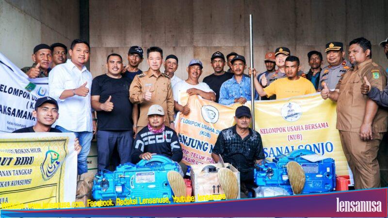 ROKAN HILIR | LENSANUSA.COM – Bupati Rokan Hilir Afrizal Sintong bersama Wakapolres Rohil Kompol Ricky Michael Mandey secara simbolis menyerahkan bantuan mesin boat sebanyak 80 buah mesin kepada kelompok nelayan yang ada di Kecamatan Bangko dan Palika, Selasa (19/9/2023) di pelabuhan ansui Bagansiapiapi.