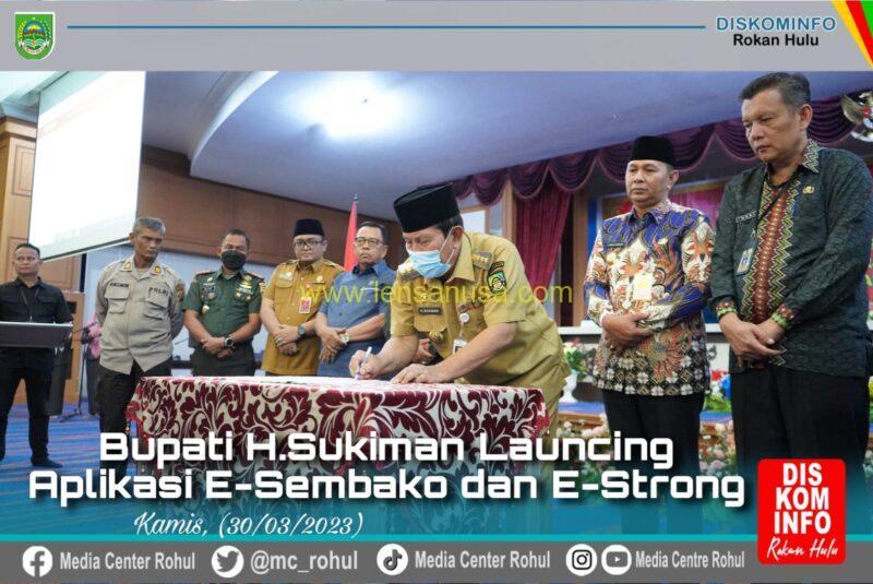 ROKAN HULU | LENSANUSA.COM – Dalam rangka peningkatan pelayanan kepada masyarakat yang disesuaikan dengan perkembangan kemajuan tekhnologi, Pemerintah Kabupaten Rokan Hulu melaunching sebuah aplikasi pemantauan harga bernama E-Sembako Plus dan Aplikasi E-STRONG untuk pencegahan stunting, usai Pelaksanaan Kegiatan Musrenbang RKPD tahun 2024, di Convention hall Islamic Center Rokan Hulu, Kamis (30/03/2023).