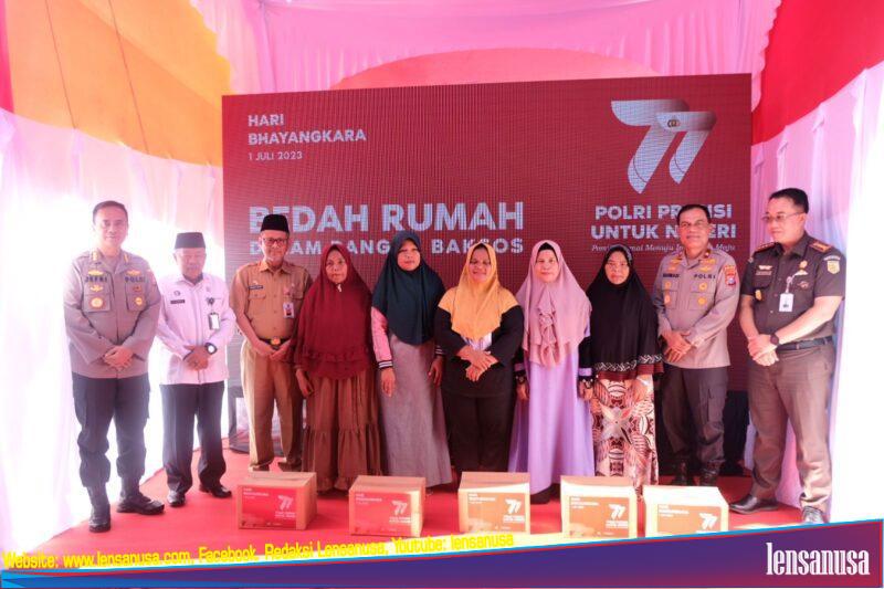 PEKANBARU, RIAU | LENSANUSA.COM – Wakapolda Riau, Brigjen Pol Kasihan Rahmadi, menyerahkan secara simbolis kunci rumah hasil renovasi (bedah rumah) bantuan Kapolri dalam rangka Hari Bhayangkari ke 77, di Jalan Pesisir Gang Singgalang, Kelurahan Meranti Pandak, Kecamatan Rumbai Pesisir, Pekanbaru, Senin (19/06/2023) pagi, sekitar pukul 10.00 Wib.