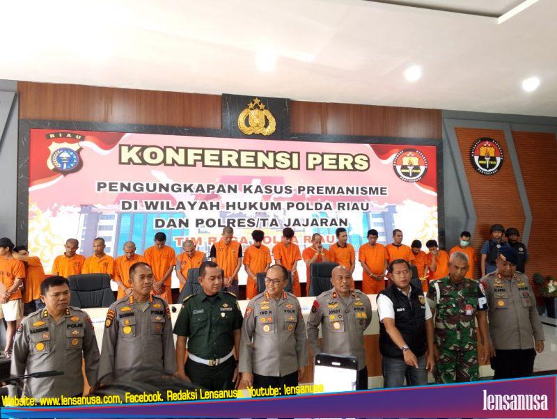 PEKANBARU | LENSANUSA.COM –  Polda Riau melalui Tim RAGA Polda Riau berhasil mengungkap 43 kasus premanisme dan mengamankan 54 tersangka dalam kurun waktu 15-27 Mei 2025.