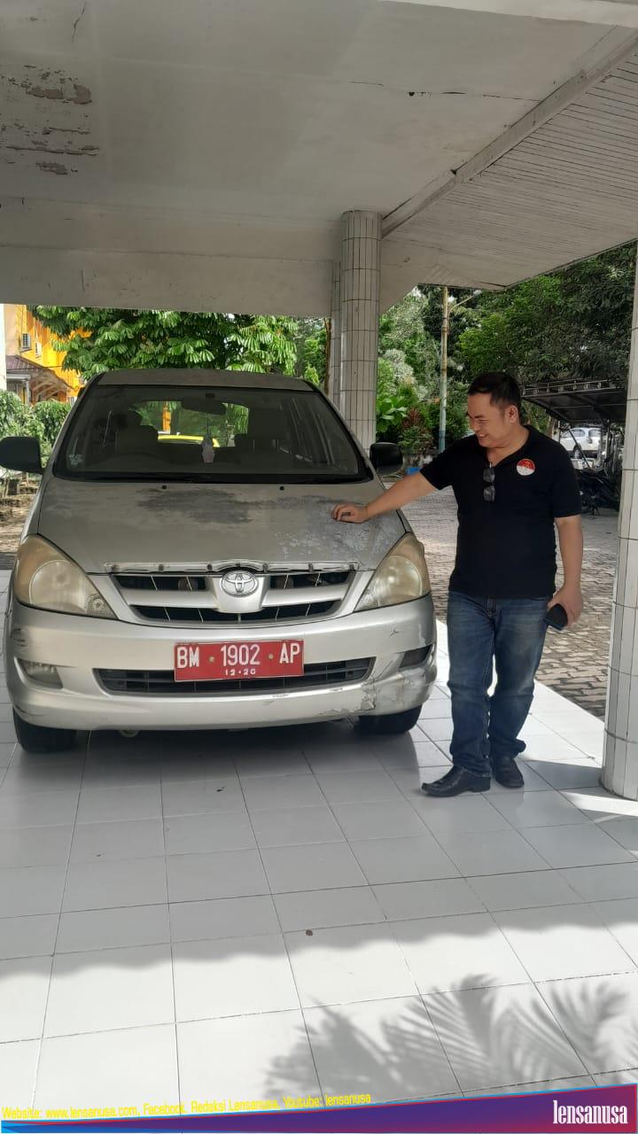Kami dari awak media kebetulan melewati jalan tersebut merasa kaget melihat mobil dinas yang mati plat nomor