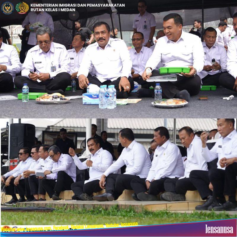 MEDAN | LENSANUSA.COM – Rutan Kelas I Medan mengikuti kegiatan Menteri Imigrasi dan Pemasyarakatan (Imipas) Agus Andrianto mengunjungi Rutan Kelas I Cipinang, Jakarta Timur secara virtual melalui channel YouTube PASTV Ditjenpas. Tujuan Kedatangan ini untuk melaksanakan makan siang bersama dan berdialog dengan para tahanan, Selasa (25/02/2025).