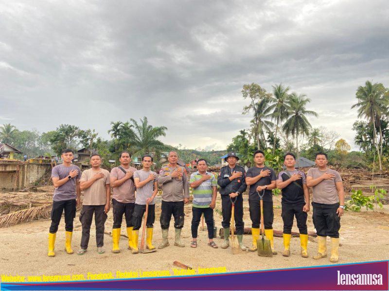 Kapolres Labuhanbatu Selatan, AKBP Aditya S.P. Sembiring Muham, S.I.K., menyampaikan bahwa keterlibatan jajarannya merupakan bentuk nyata kehadiran Polri di tengah masyarakat yang sedang tertimpa musibah.