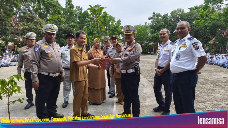 Sebagai bentuk nyata dari edukasi dan kepedulian, Ditlantas Polda Riau menyerahkan bantuan simbolis kepada siswa dan sekolah berupa helm, tumbler, buku ajar lalu lintas, serta bibit pohon untuk ditanam di lingkungan sekolah.