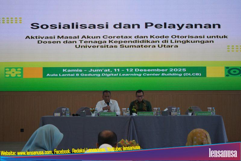 MEDAN | LENSANUSA.COM — Kantor Wilayah Direktorat Jenderal Pajak (DJP) Sumatera Utara I bekerja sama dengan Universitas Sumatera Utara (USU) menyelenggarakan kegiatan sosialisasi dan asistensi aktivasi akun Coretax bagi sivitas akademika. Kegiatan ini berlangsung selama dua hari, dari Kamis hingga Jumat, 11–12 Desember 2025, bertempat di Gedung Digital Learning Center dan Gedung Biro Rektorat USU, Medan.