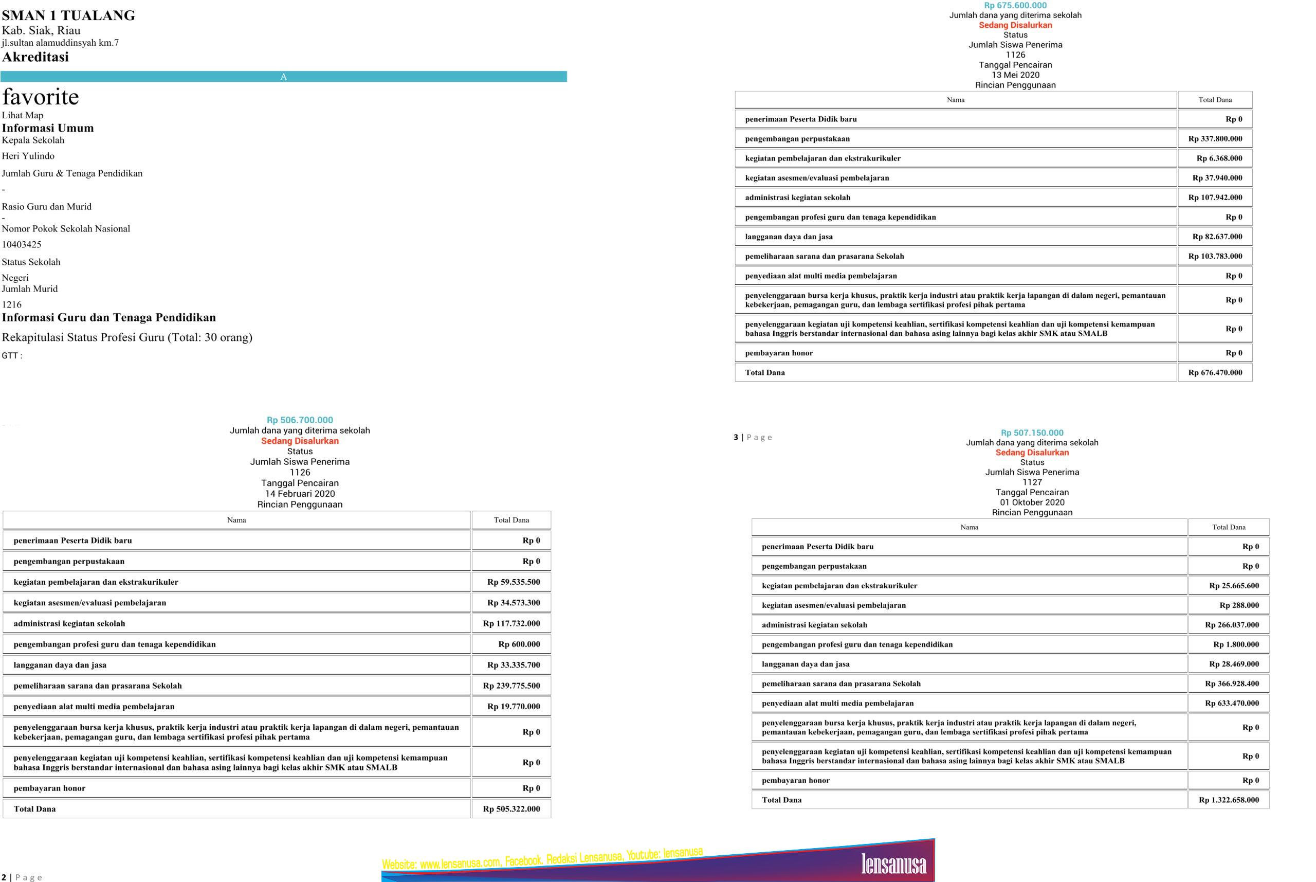 Sesuai pemberitaan media ini sebelumnya, berdasarkan informasi dan data dari berbagai sumber, diduga terjadi penyelewengan penggunaan Dana BOS di salah satu Sekolah SMA Negeri Tualang.