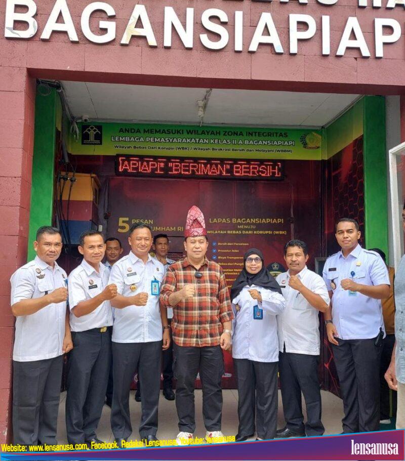 BAGANSIAPIAPI | LNC – Staf Khusus Menteri Hukum & HAM (Menkumham) RI Bidang Transformasi Digital Fajar B.S Lase menyapa para Warga Binaan Pemasyarakatan (WBP) di Lembaga Pemasyarakatan (Lapas) Kelas II A Bagansiapiapi, Rabu (12/7/2033).