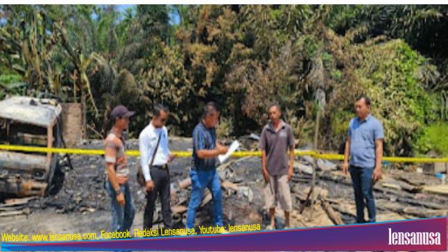 Saat ini Kanit Reskrim Polsek Pangkalan Brandan Resort Langkat di TKP memasang garis police, mengamankan 1 lembar seng bekas dan 1 batang kayu bekas yang terbakar membawanya ke Mapolsek sebagai barang bukti.