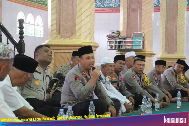 “Kalau hanya bergantung kepada pihak Kepolisian saja maka hal itu sulit terwujud, untuk itu saya mengajak kita semua untuk bersama-sama dan berkolaborasi untuk cipta kamtibmas, kita mulai dari lingkungan yang terkecil baru tingkat yang lebih luas, saya harapkan dukungan dari para jemaah yang hadir,” tutur Kapolres.
