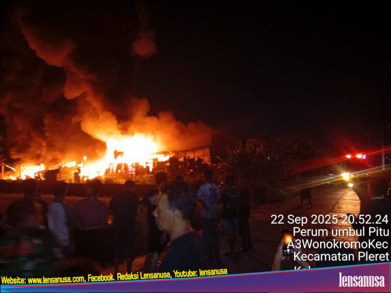 BANTUL | LENSANUSA.COM. – Kebakaran melanda sebuah gudang rosok plastik milik UD Berkah di Dusun Pandes I, Kalurahan Wonokromo, Kapanewon Pleret, Bantul, Senin Malam (22/9/2025) .