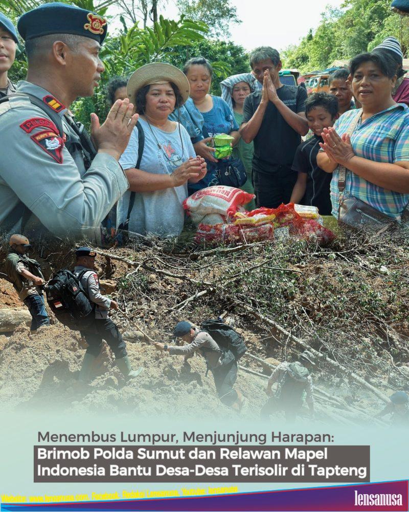 TAPANULI TENGAH | LENSANUSA.COM – Jalan putus dan medan berat tidak pernah menghentikan langkah Brimob. Itulah yang terlihat pada Jumat (05/12/2025) ketika Personel Batalyon A Sat Brimob Polda Sumut, dipimpin Wadanki 3 IPTU Yauwardi, bersama relawan dari Yayasan Mapel Indonesia, bergerak menuju tiga desa yang terisolir akibat bencana di Kabupaten Tapanuli Tengah: Desa Perambunan, Desa Simaninggir, dan Desa Bonan Dolok.