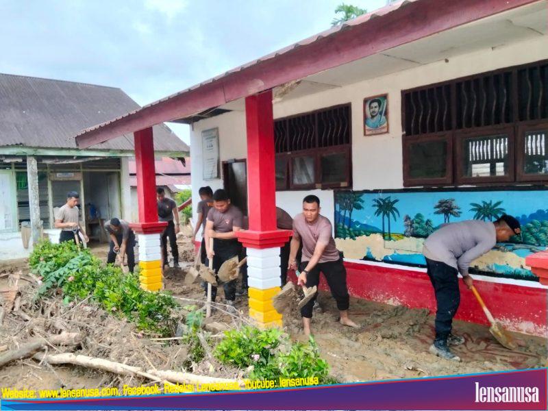 Selain pembersihan sekolah, Satbrimob Polda Sumut juga melakukan kegiatan kemanusiaan berskala lebih luas di wilayah yang sama. Di bawah pimpinan Danki 2 Batalyon C, Iptu Januar Fazhari, S.H., personel bersama organisasi masyarakat setempat melakukan pembersihan rumah-rumah warga serta fasilitas ibadah, termasuk masjid yang sempat tertimbun lumpur dan puing kayu.
