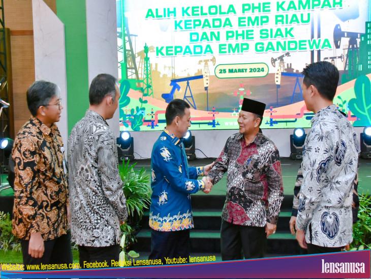 PEKANBARU | LENSANUSA.COM – Pj Bupati Kampar H. Hambali, SE, MH hadiri acara Alih Kelola PT Pertamina Hulu Energi (PHE) Kampar Kepada PT Energi Mega Persada (EMP) Riau yang diselenggarakan di Hotel Pangeran Pekanbaru. Senin, 25/3/24
